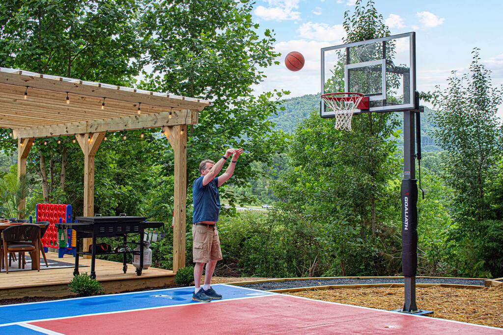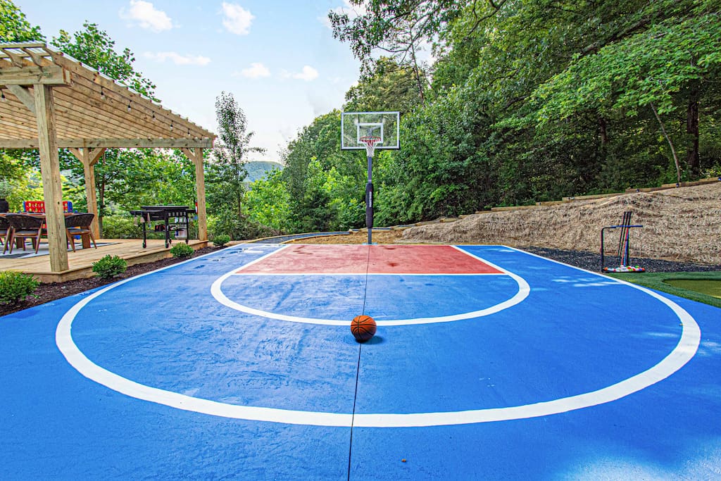 Shoot hoops or play a quick game on the private half-court basketball setup.