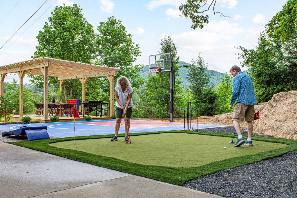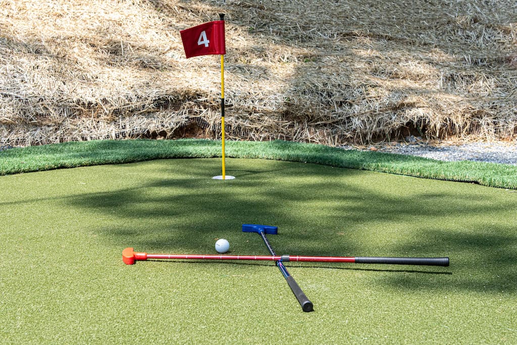 Practice your putting skills with a fun, small mini golf course in the backyard.