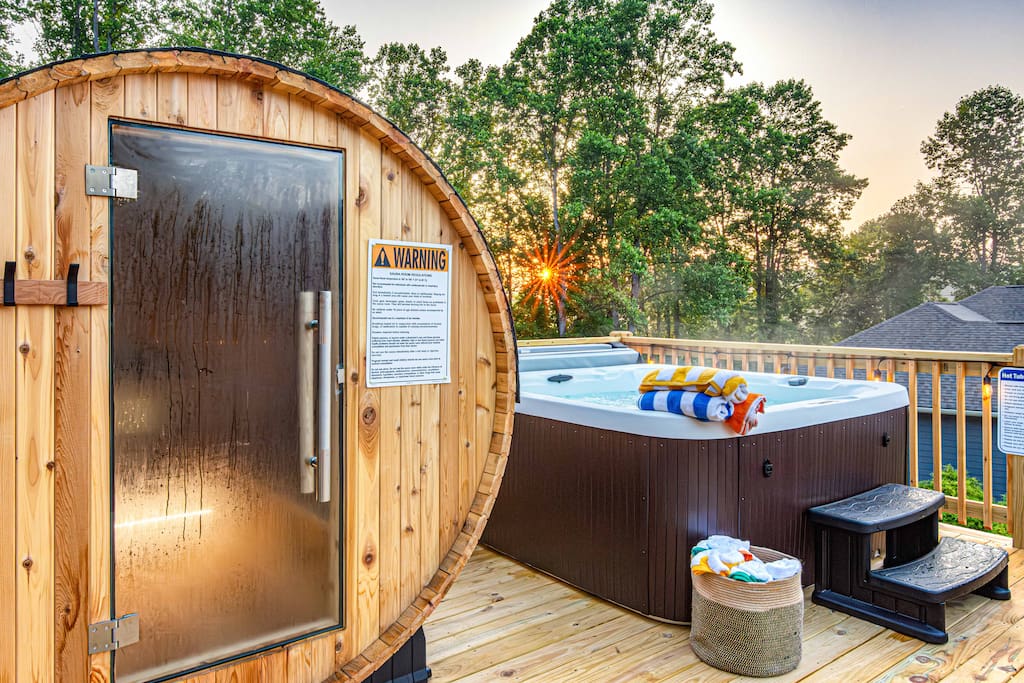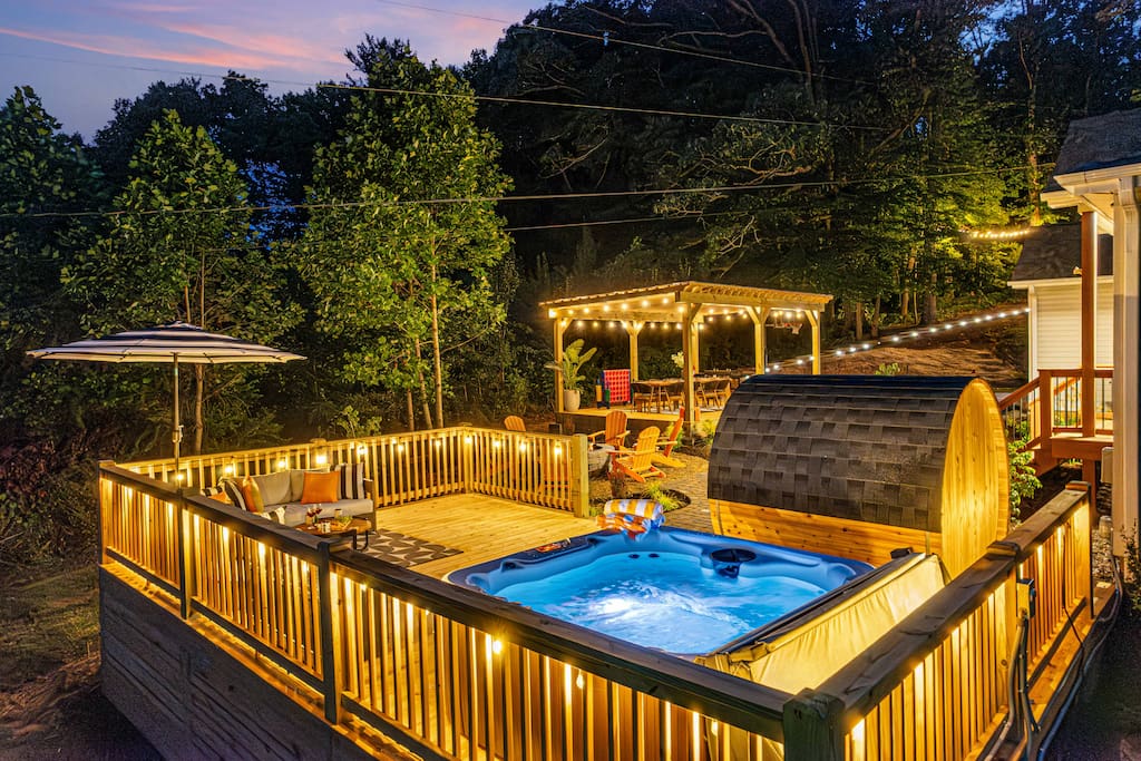Just 15 minutes from downtown Asheville, this peaceful mountain retreat features a barrel sauna, stargazing geodome, and game rooms the whole family will love. Designed for connection and fun, it’s the perfect getaway for all ages.