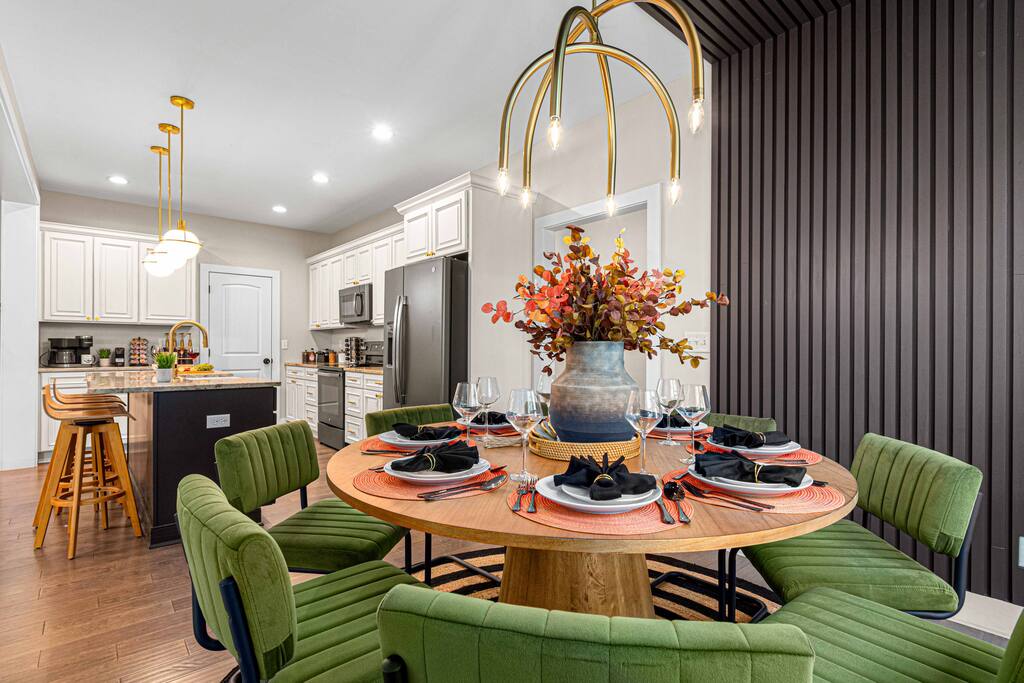 Gather around a spacious indoor dining table comfortably seating up to eight guests.