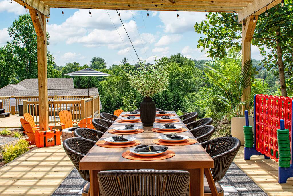 Enjoy family-friendly lawn games like cornhole and giant Jenga, giant Connect 4 and Croquet for all-ages family entertainment.