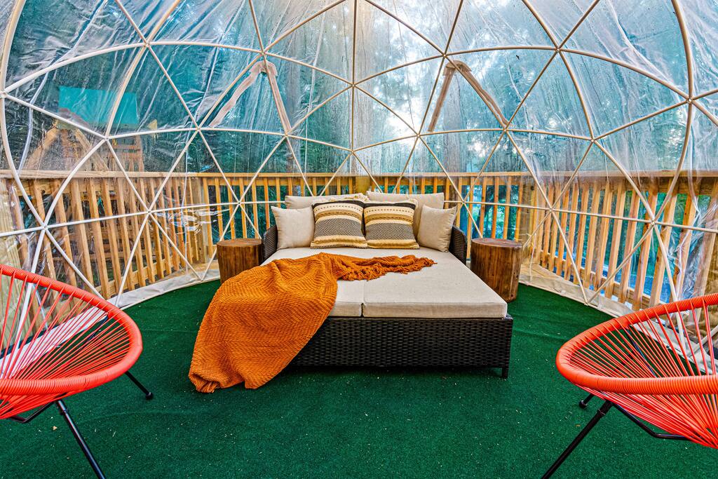 Lounge, read, or stargaze in this cozy dome designed for peaceful outdoor relaxation.