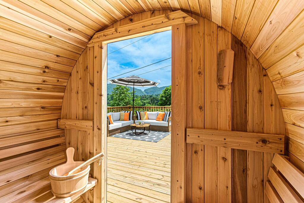 🎯 BARREL SAUNA – Unwind with mountain views and a detoxifying steam