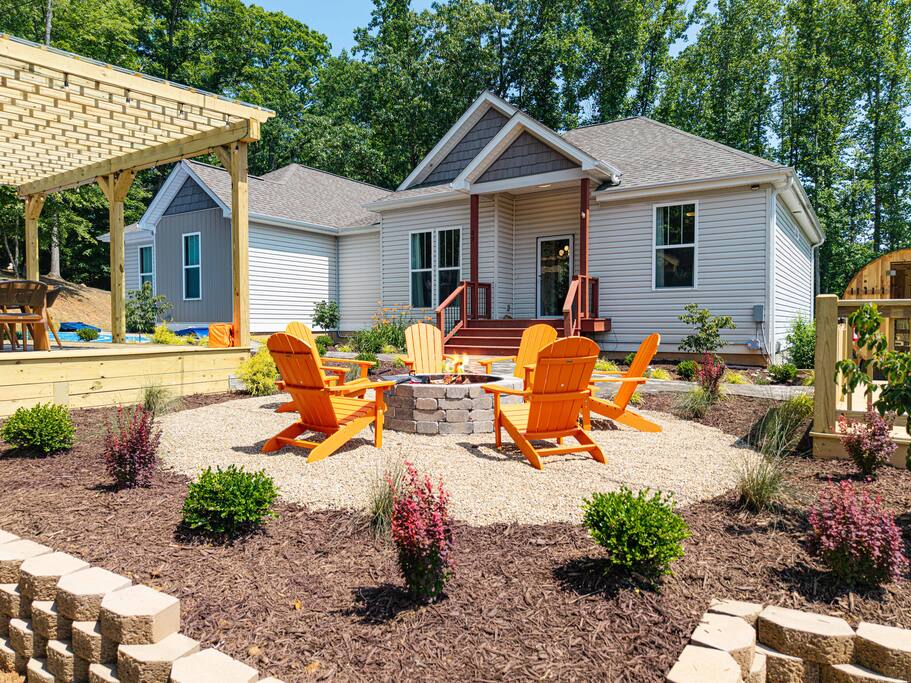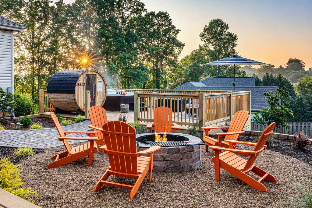 * FIRE PIT WITH ADIRONDACK CHAIRS