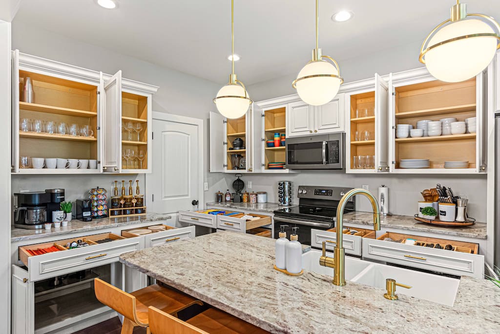 The fully stocked kitchen is designed for cooking with ease, featuring everything you need to prepare meals for large groups. With plenty of counter space, modern appliances, and all the essentials, it's perfect for family dinners, holiday feasts, or casual breakfasts before a day of adventure.
