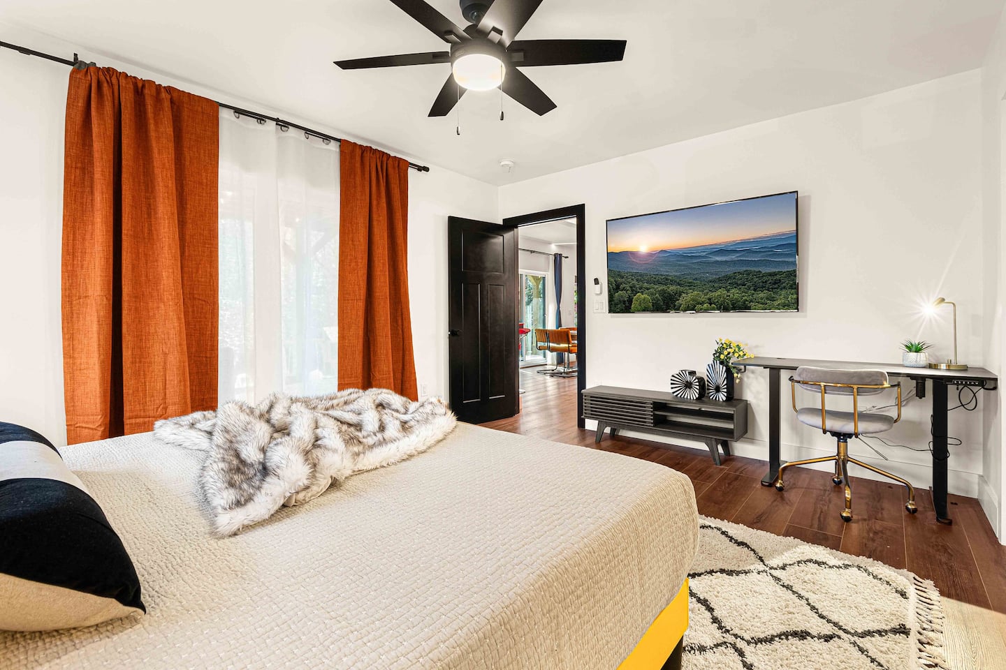 King Bed, 65" Smart TV, Dedicated Office desk and chair with adjustable height