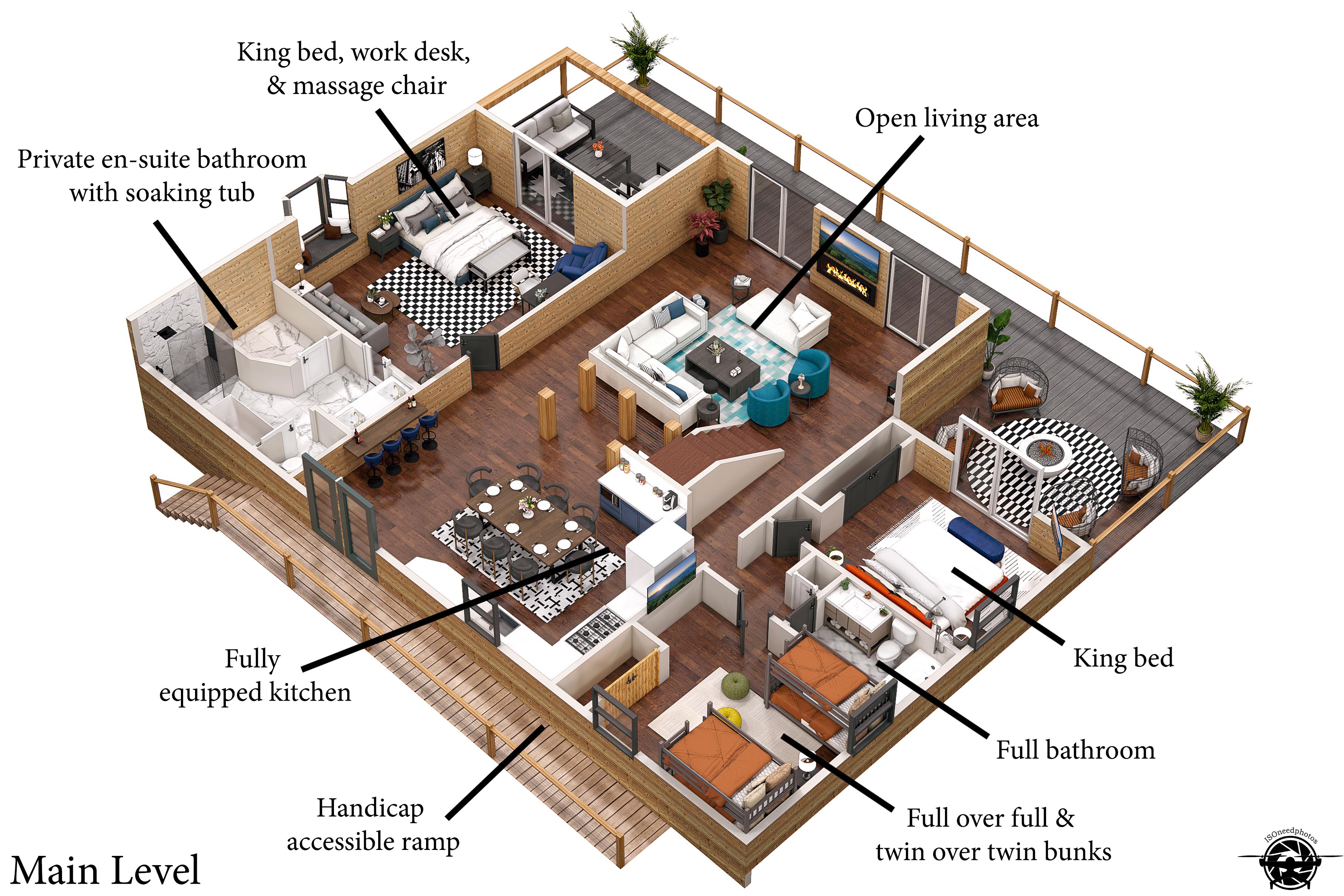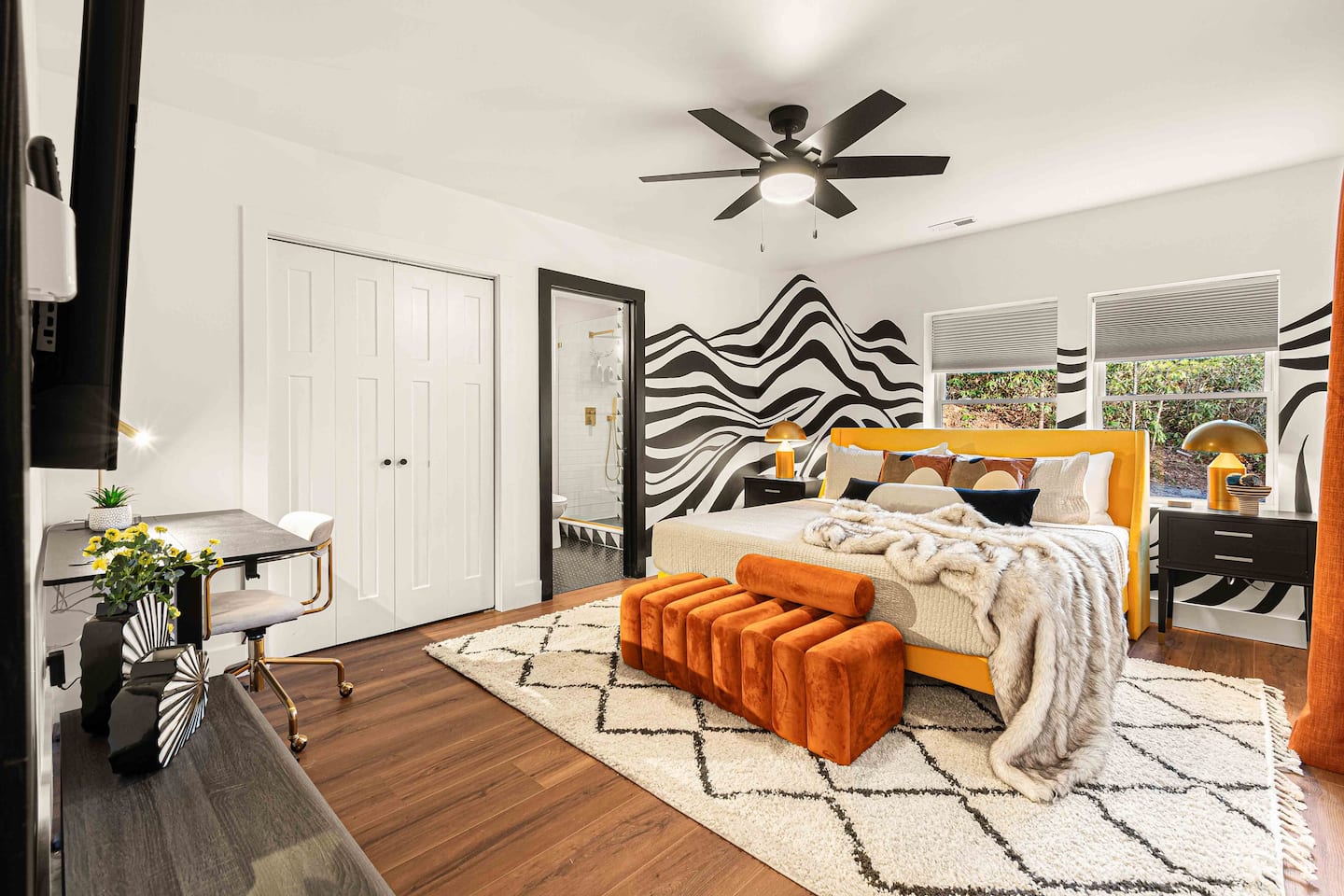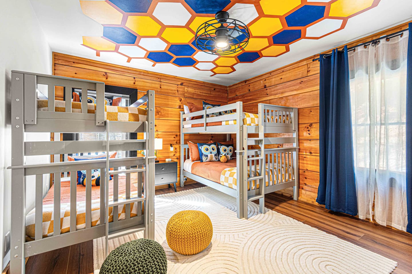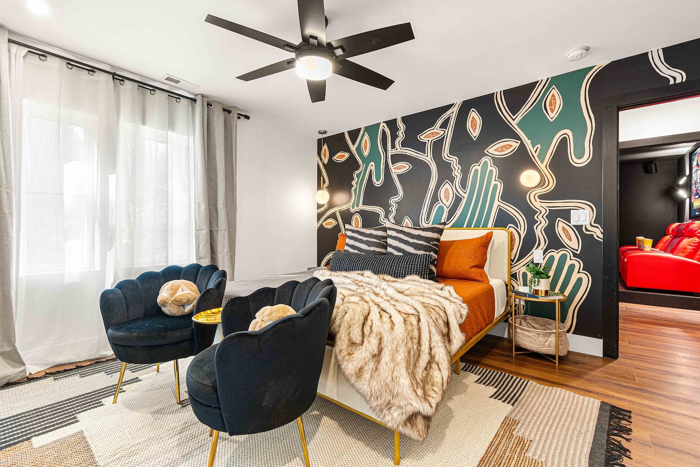 Accommodating up to 22 guests across 6 luxurious bedrooms and offering multiple cozy living spaces, Luxe Artisan Resort ensures everyone finds their perfect spot under its roof. Every bed is equipped with cozy mattresses, luxurious sheets, and a TV in each room. See the room by room breakdown further below.
