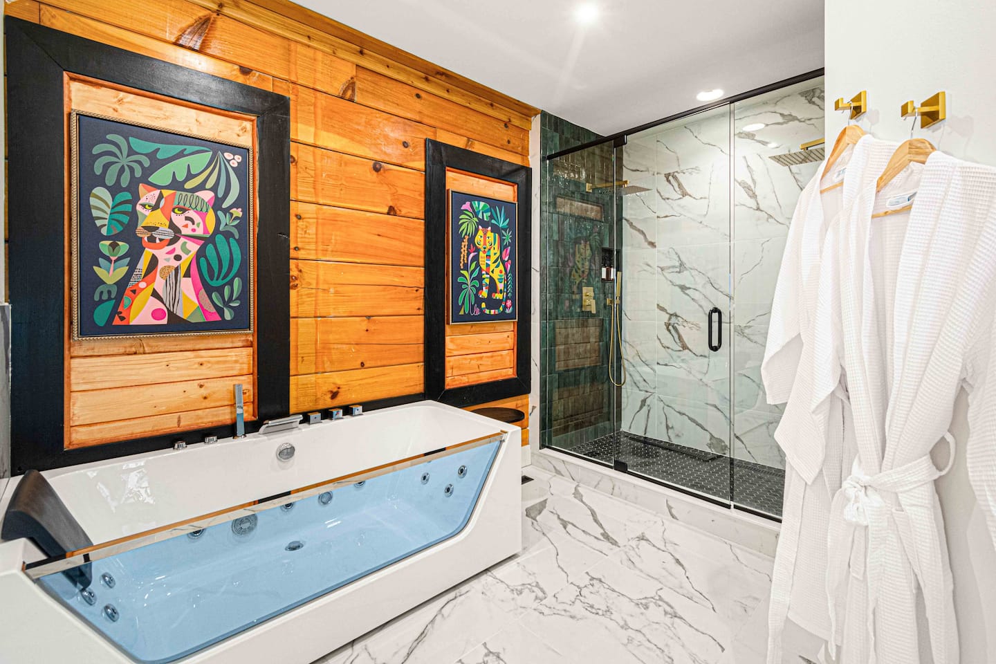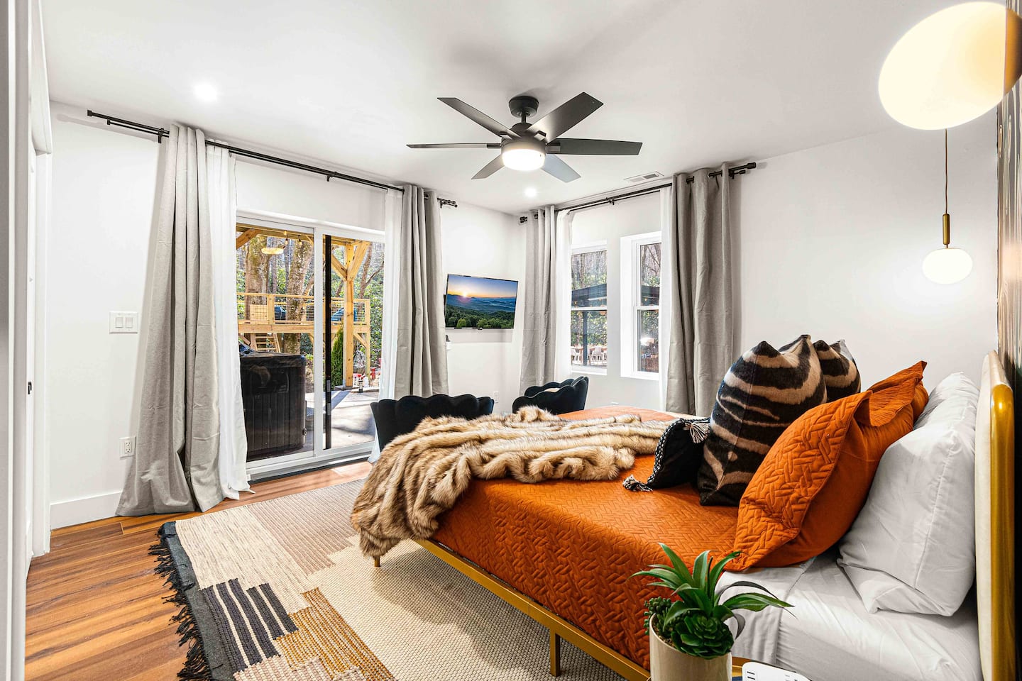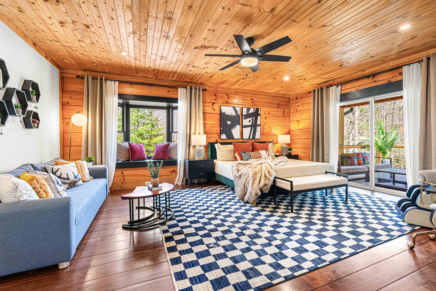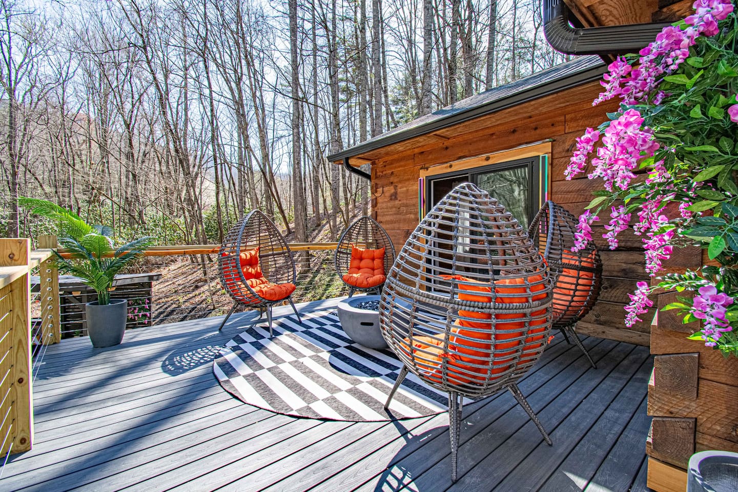 Located just minutes away from the grocery store, a swift 5-minute drive to the vibrant downtown of Black Mountain, and only 15 minutes from the bustling city of Asheville, the Luxe Artisan Resort offers the perfect balance of seclusion amidst the beauty of nature and convenience to urban life. Surrounded by towering trees, it's a secluded sanctuary that promises a stay filled with luxury, discovery, and unforgettable memories.