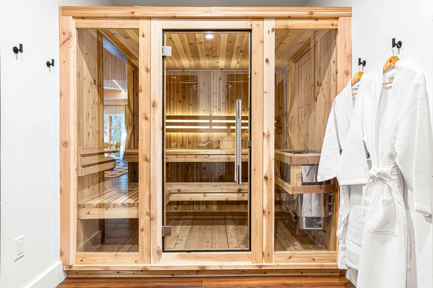 2 large hot tubs, indoor sauna, massage chair, yoga mats, every element has been designed to soothe your senses and rejuvenate your spirit.