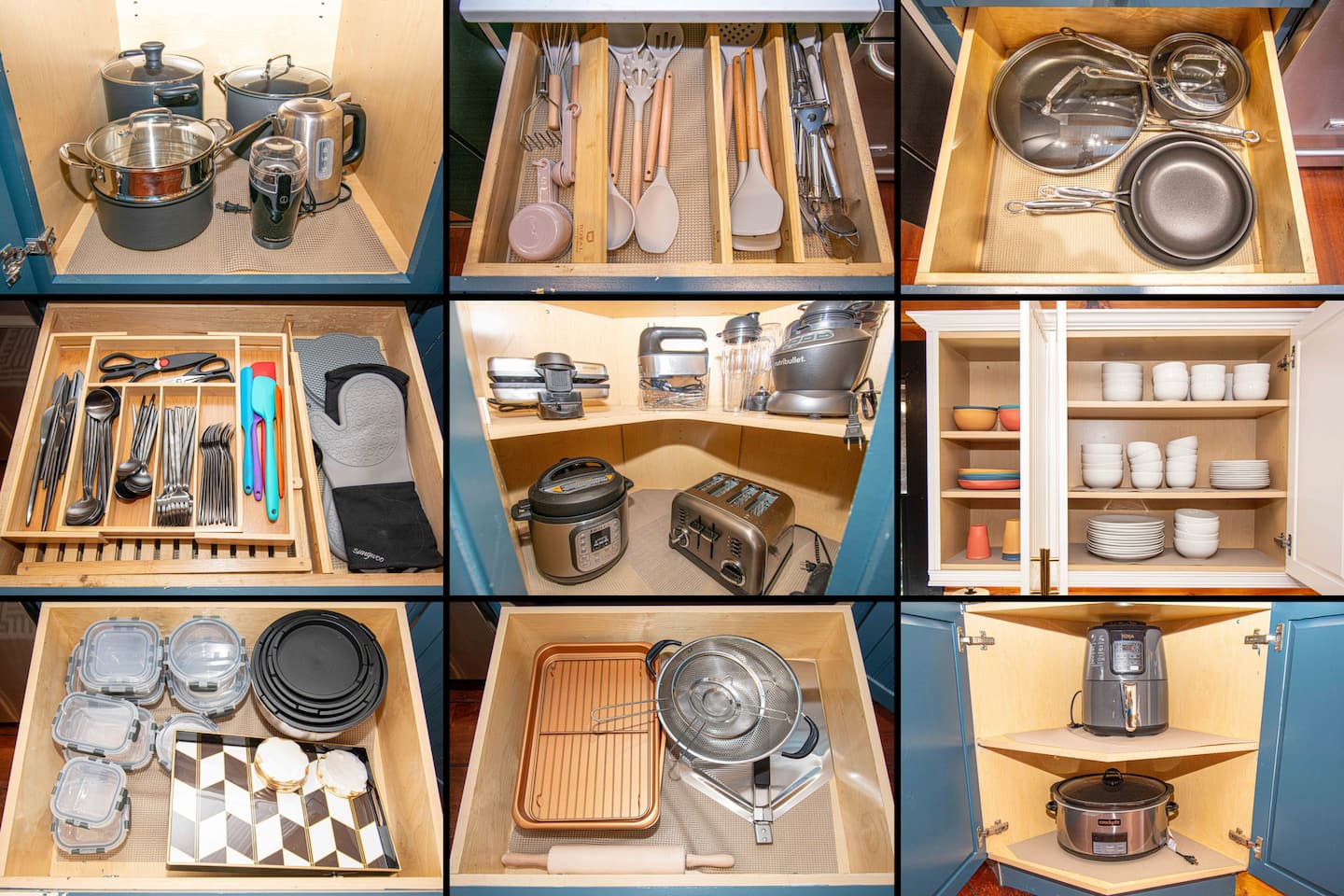 - Waffle maker, toaster, instant pot, mixer, pasta strainers, bakeware, storage containers, bakeware, etc