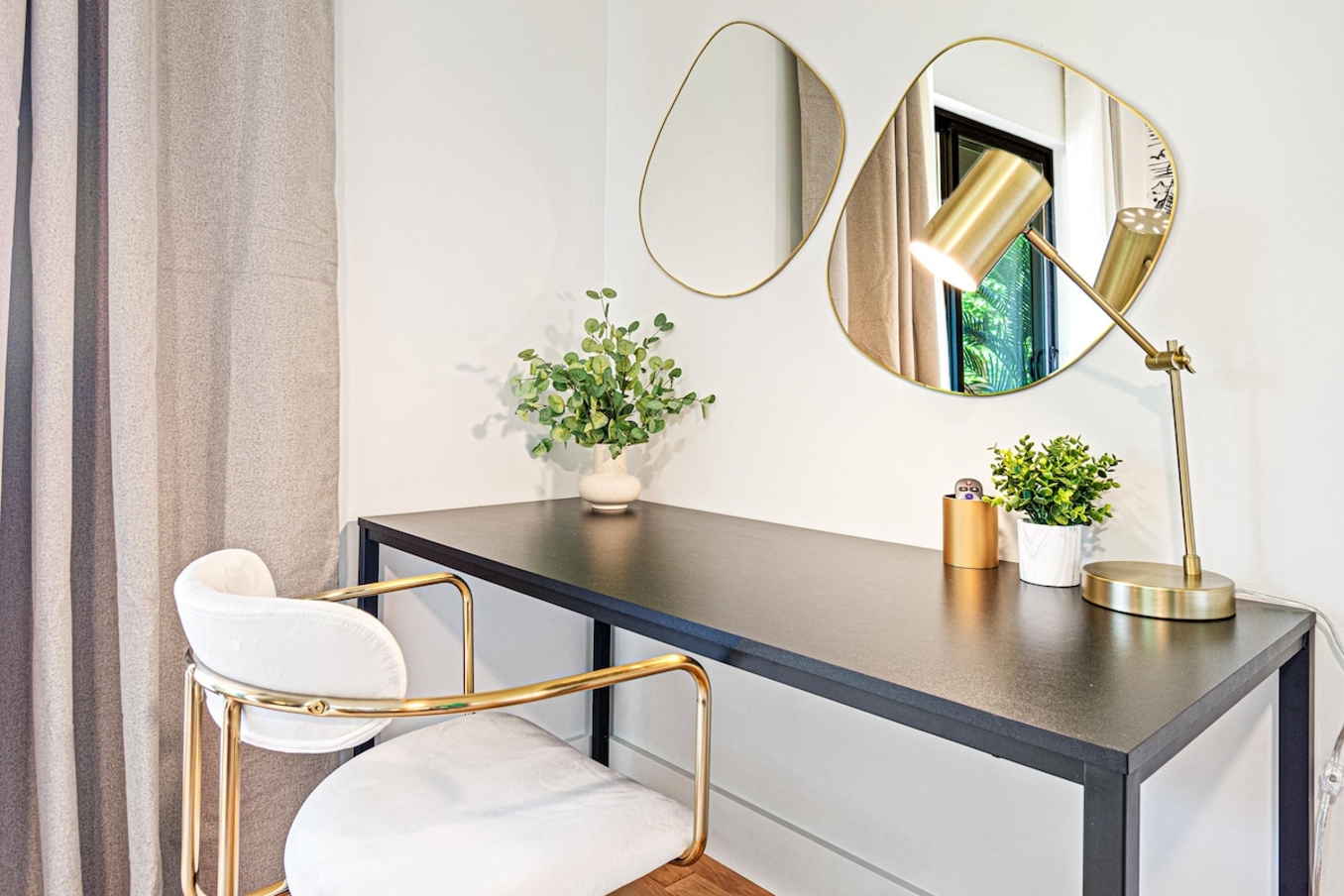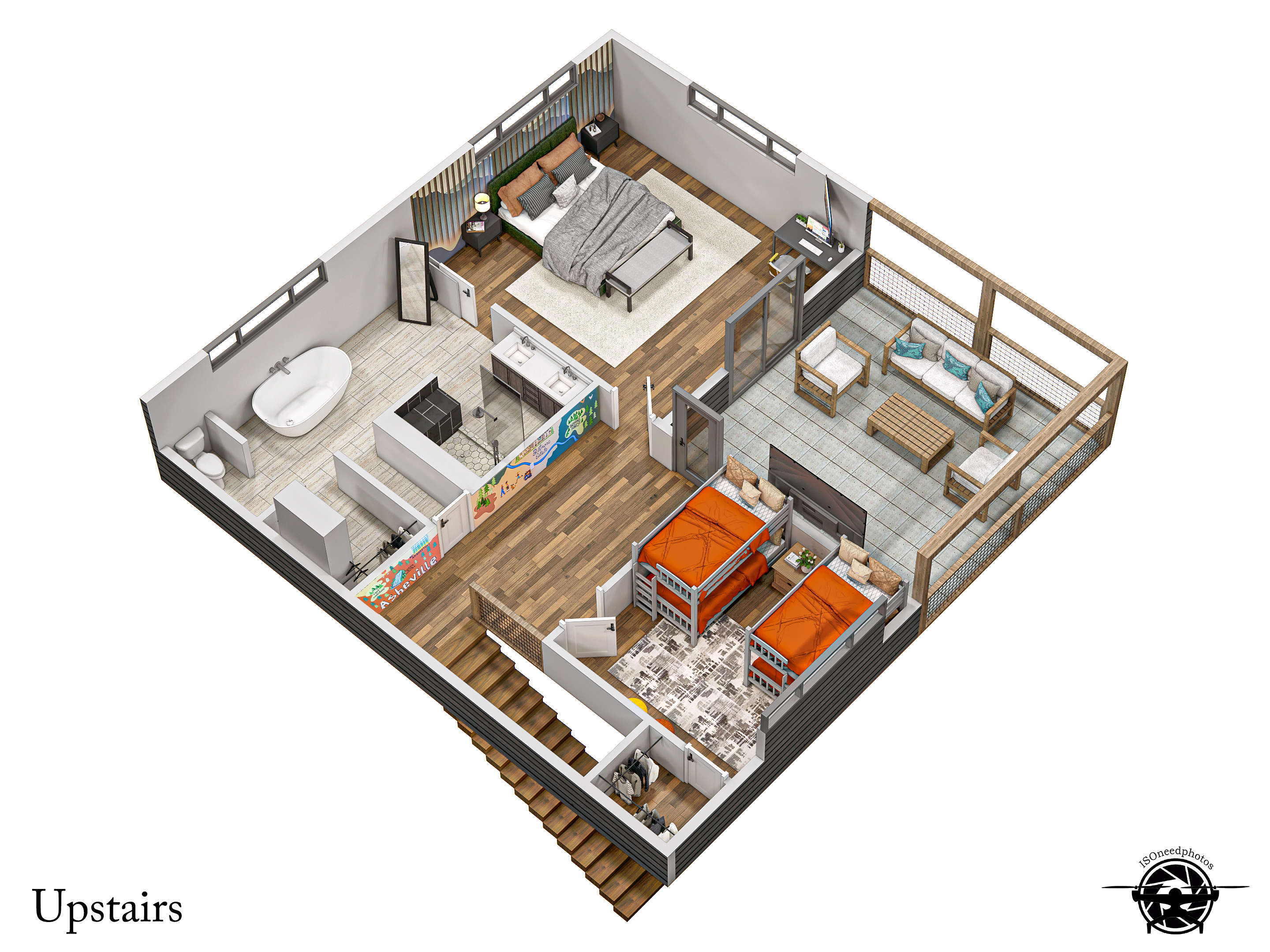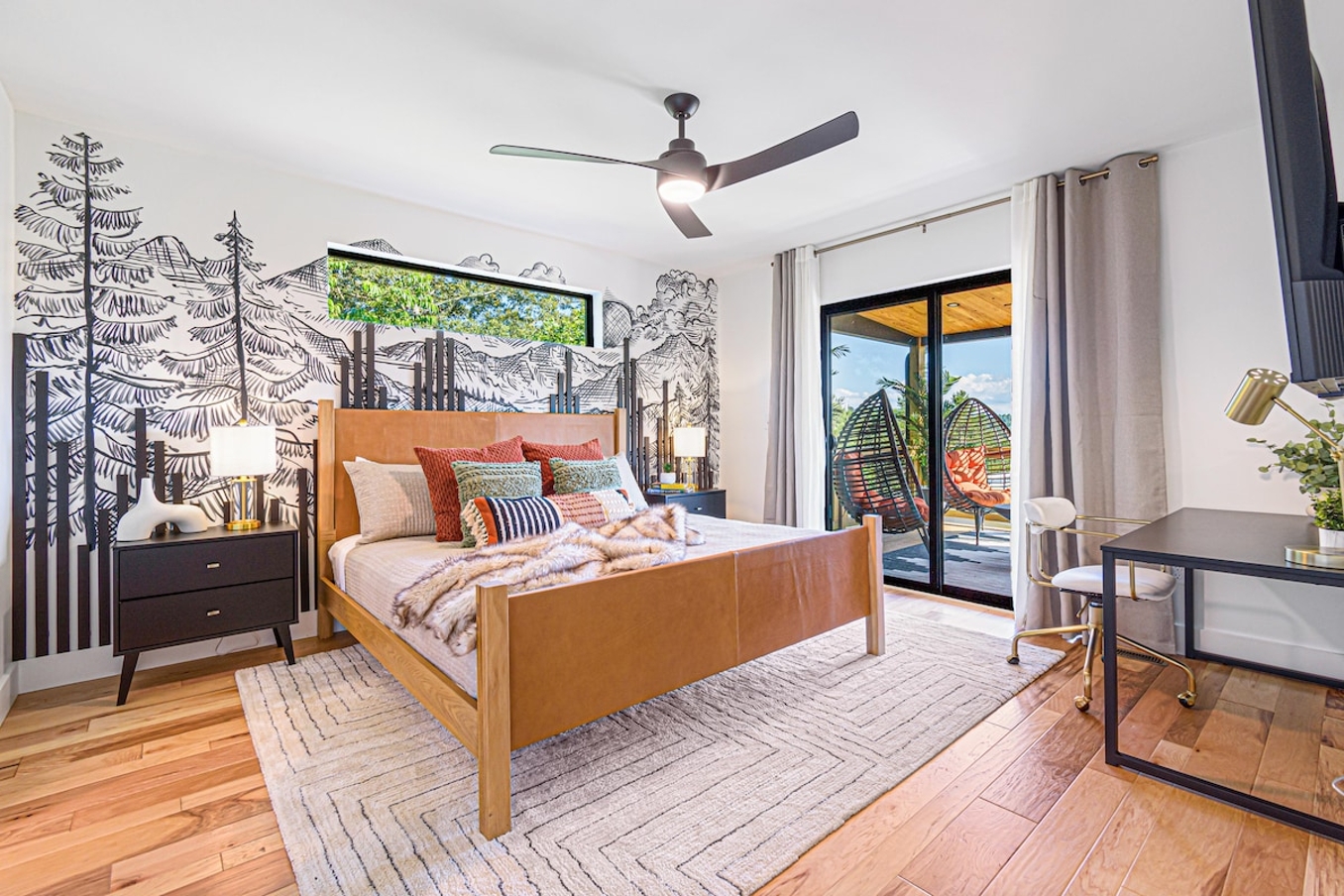 2nd Ensuite Bedroom (2nd Floor): King Bed, 55’’ Smart Roku TV, Dedicated Office desk and chair with adjustable height and a walk-out porch.