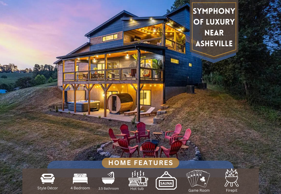 Embrace 2025 in style at Symphony of Luxury AVL, located amidst the majestic Blue Ridge Mountains, just 25 minutes from Asheville.