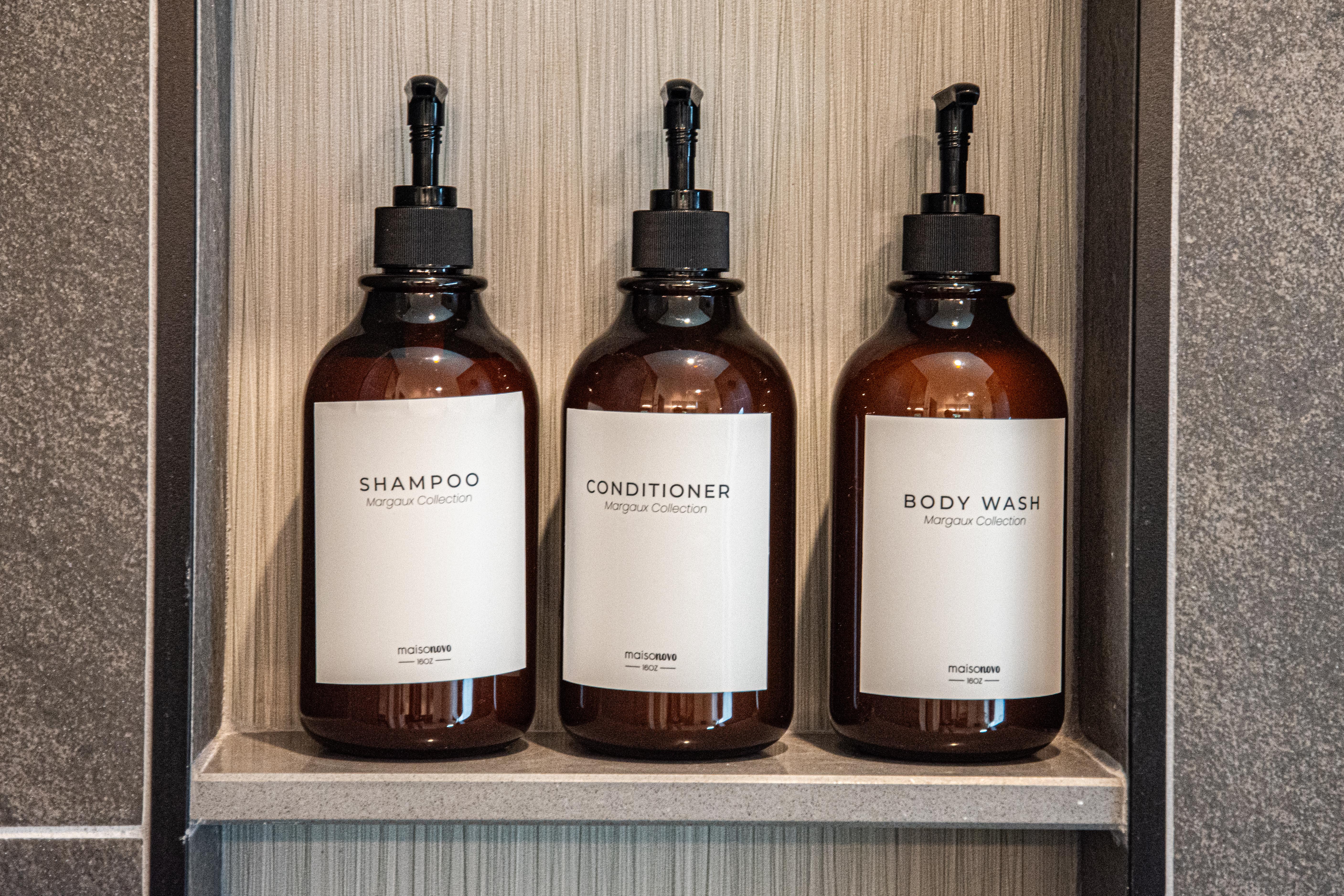 - Dispensable Hand Soap, Body Soap, Shampoo, Conditioner provided (not just a starter kit)