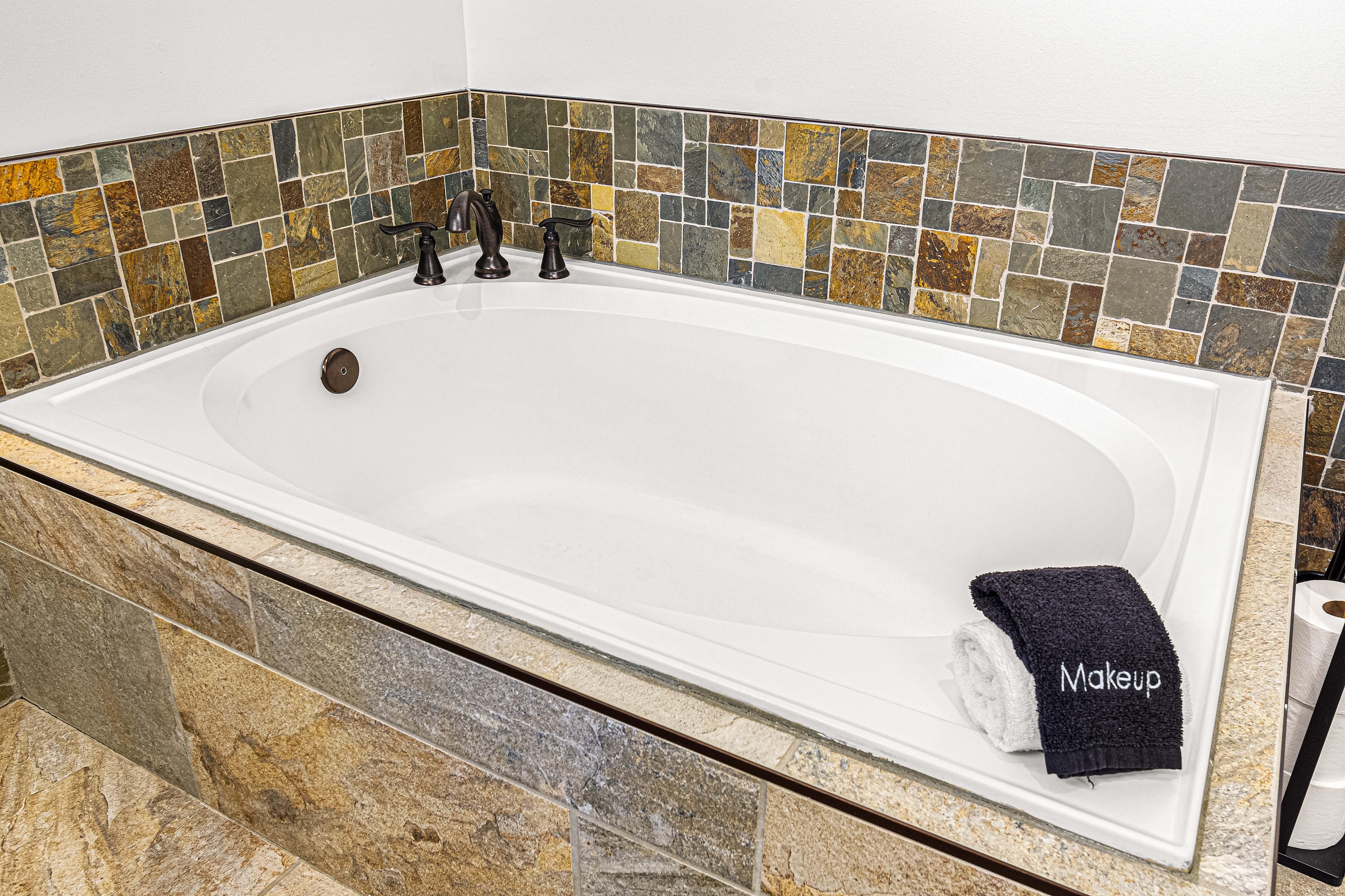 1st (Ensuite - Main Floor) - Tile standing shower, Dual Vanity, Jacuzzi Tub