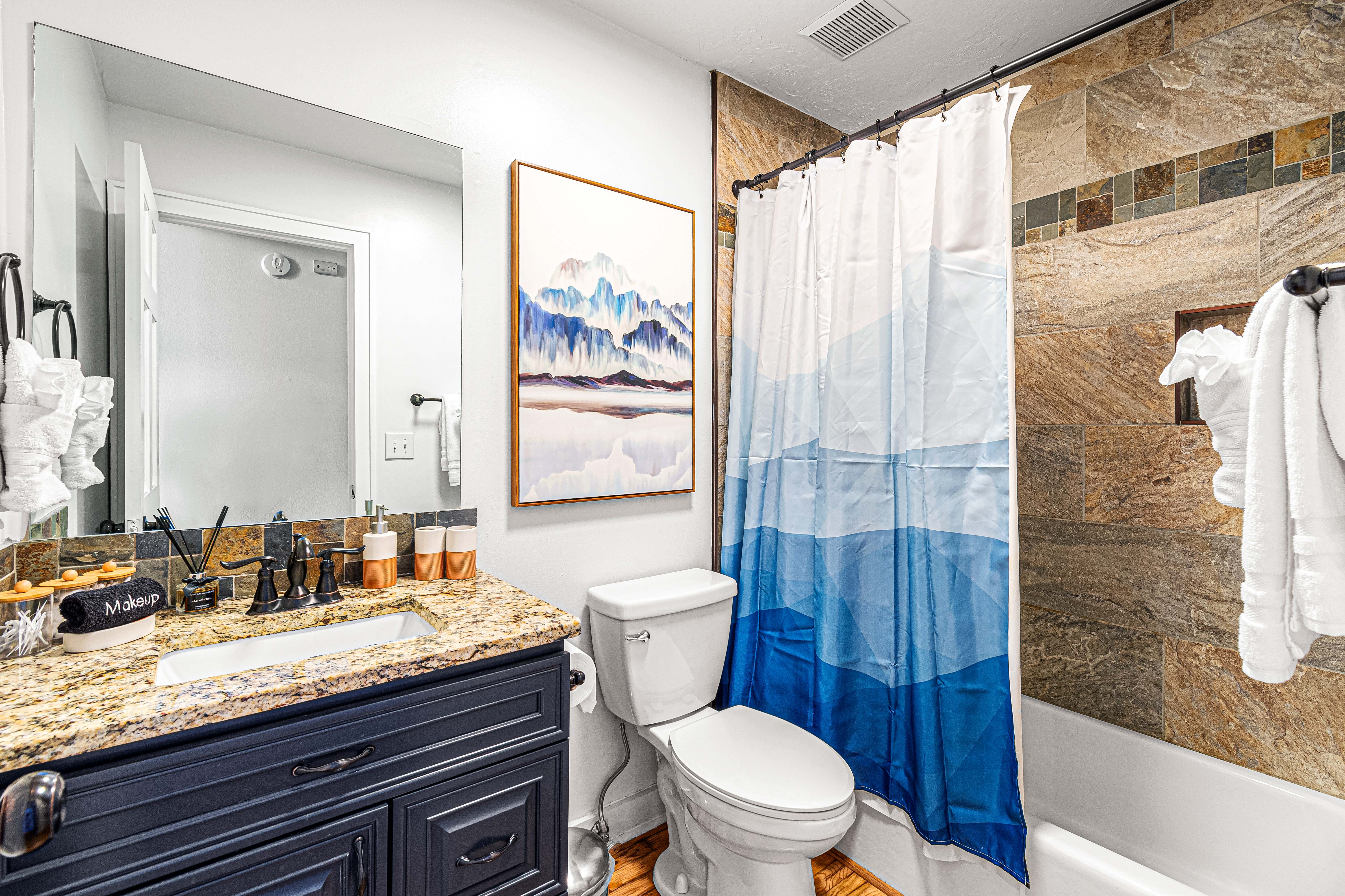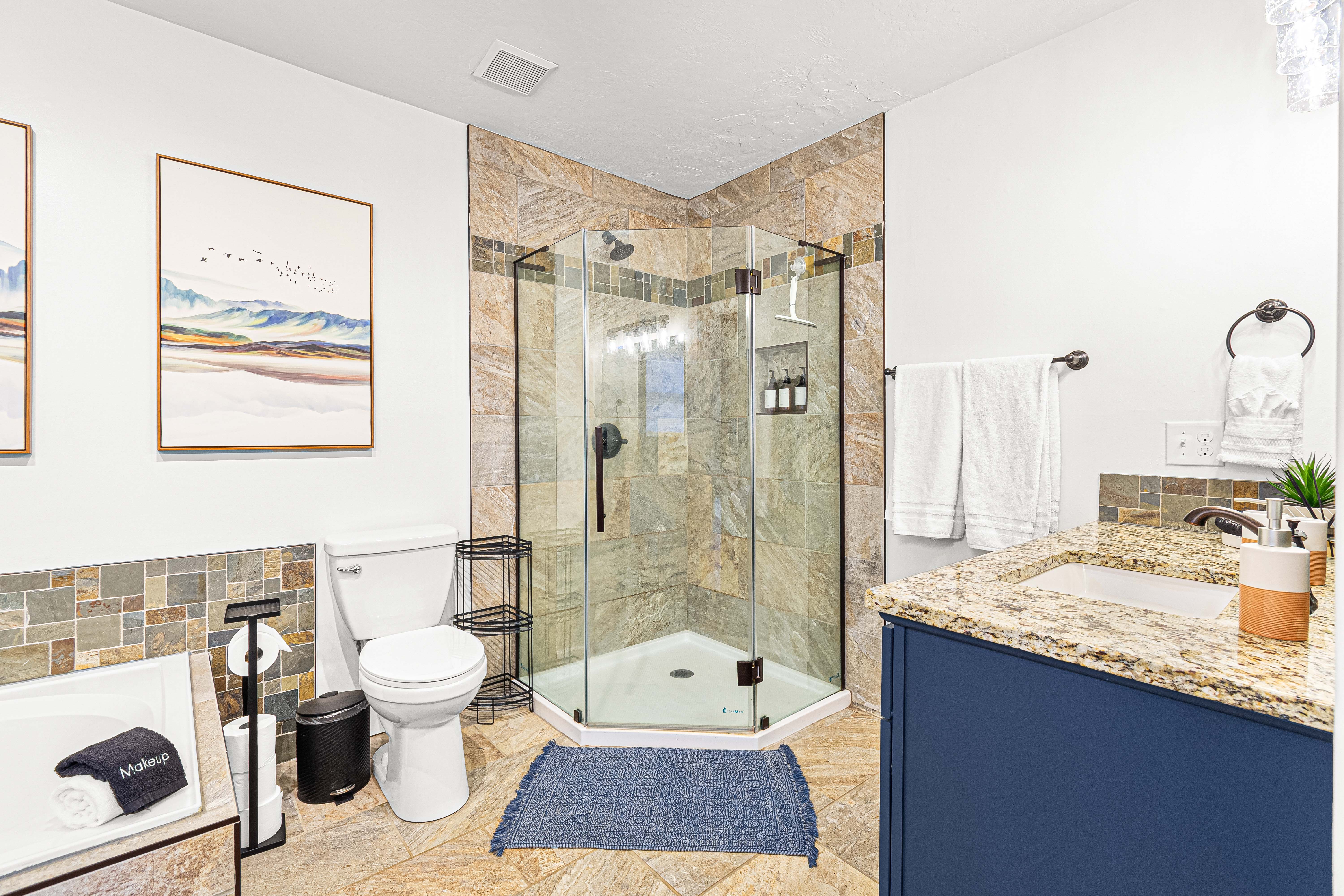 - Hair Dryer, Q-Tips, Cotton Balls in each bathroom