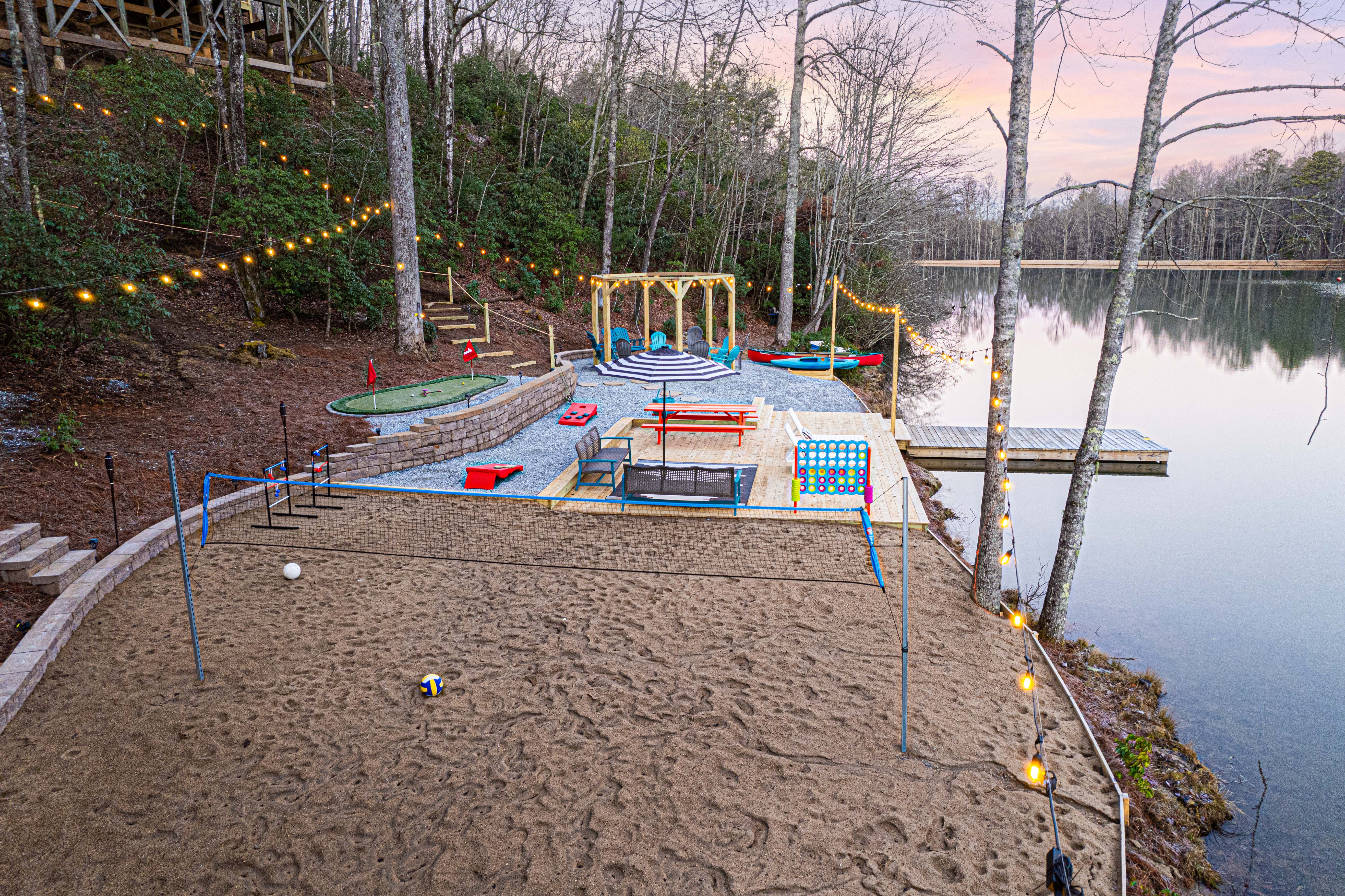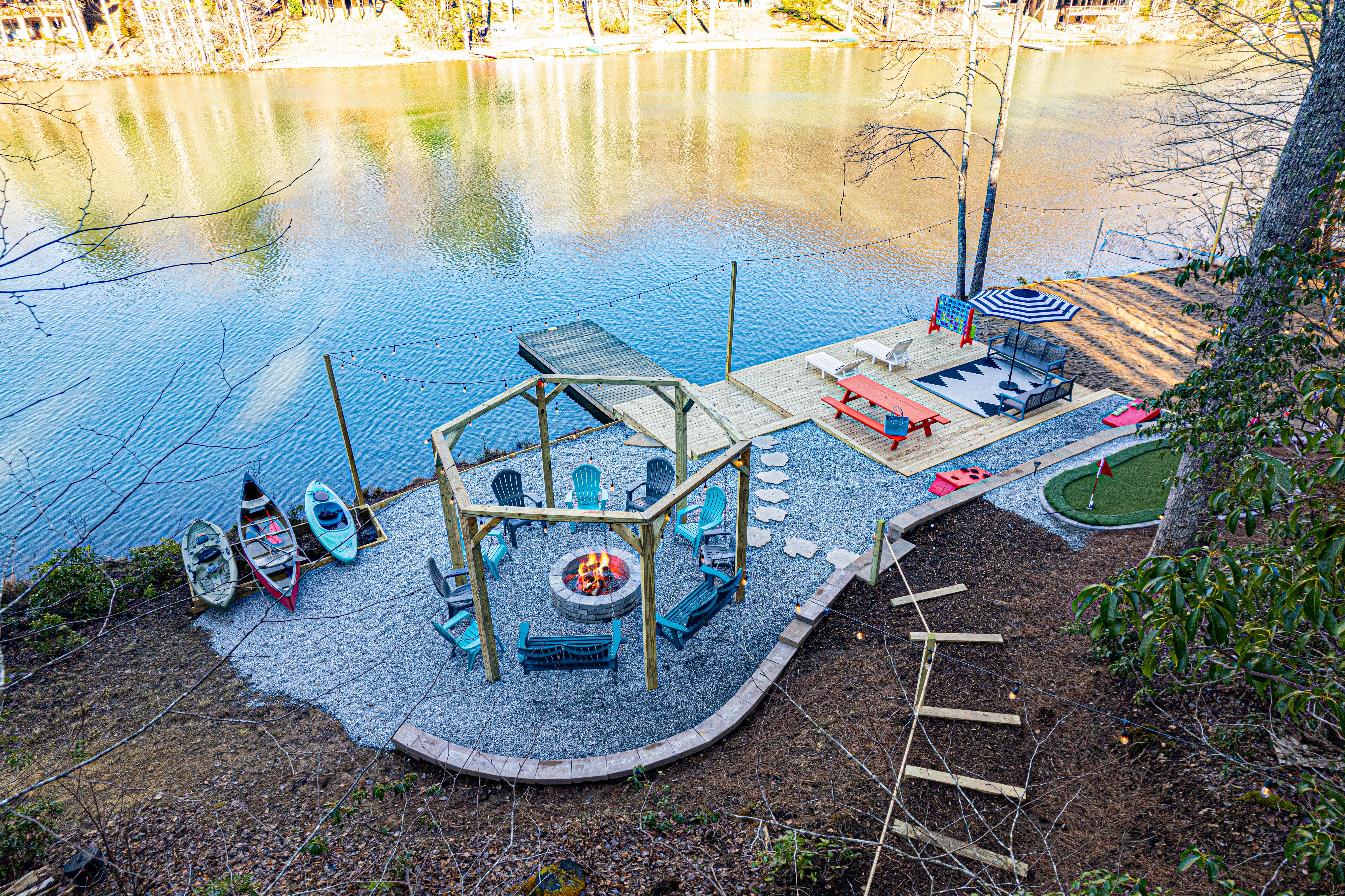 . . .Outdoor amenities include lakefront volleyball, mini-putt, bags, large wood burning firepit, multiple decks