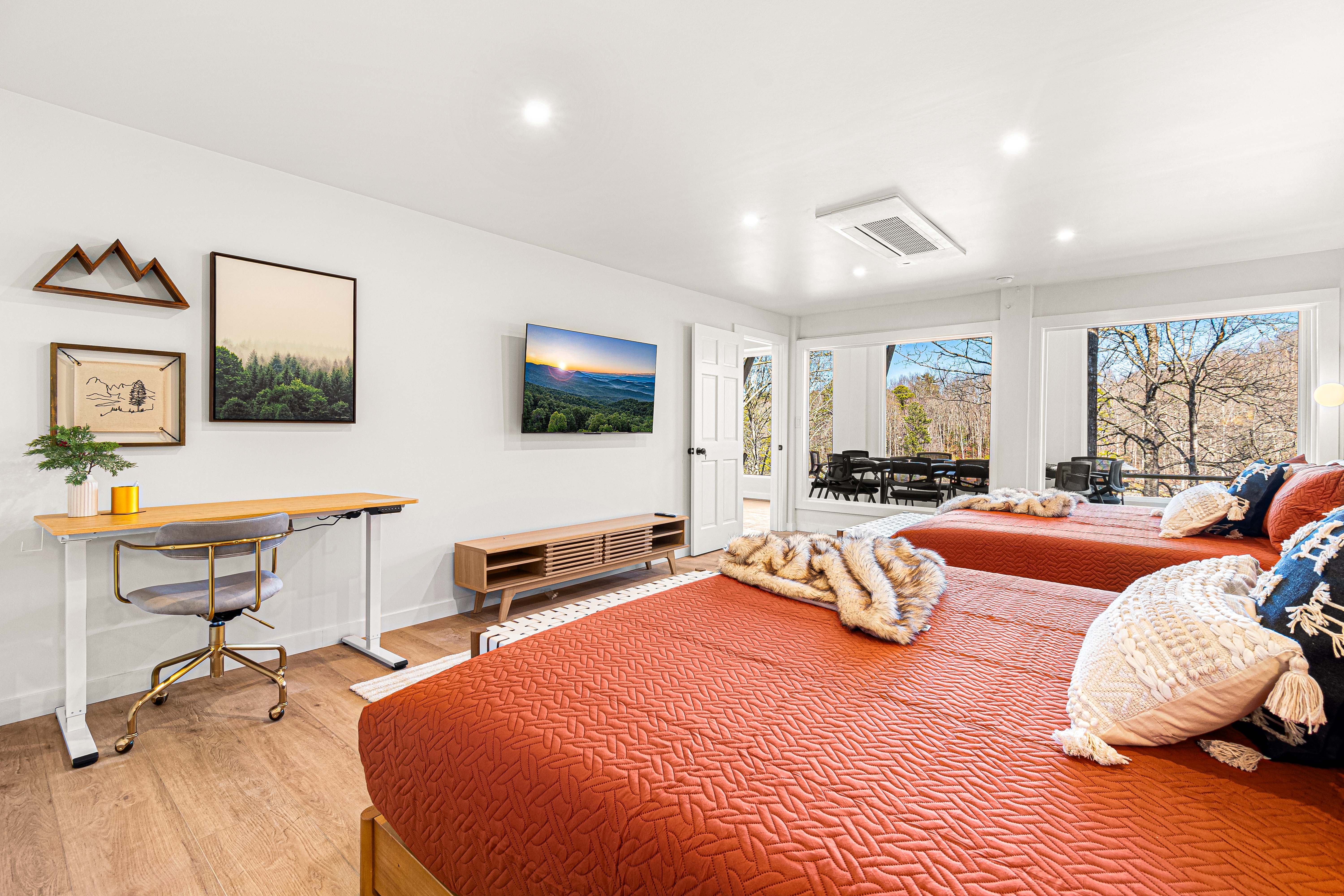 Two King Beds, 65" TV, Dedicated Office desk and chair with adjustable height