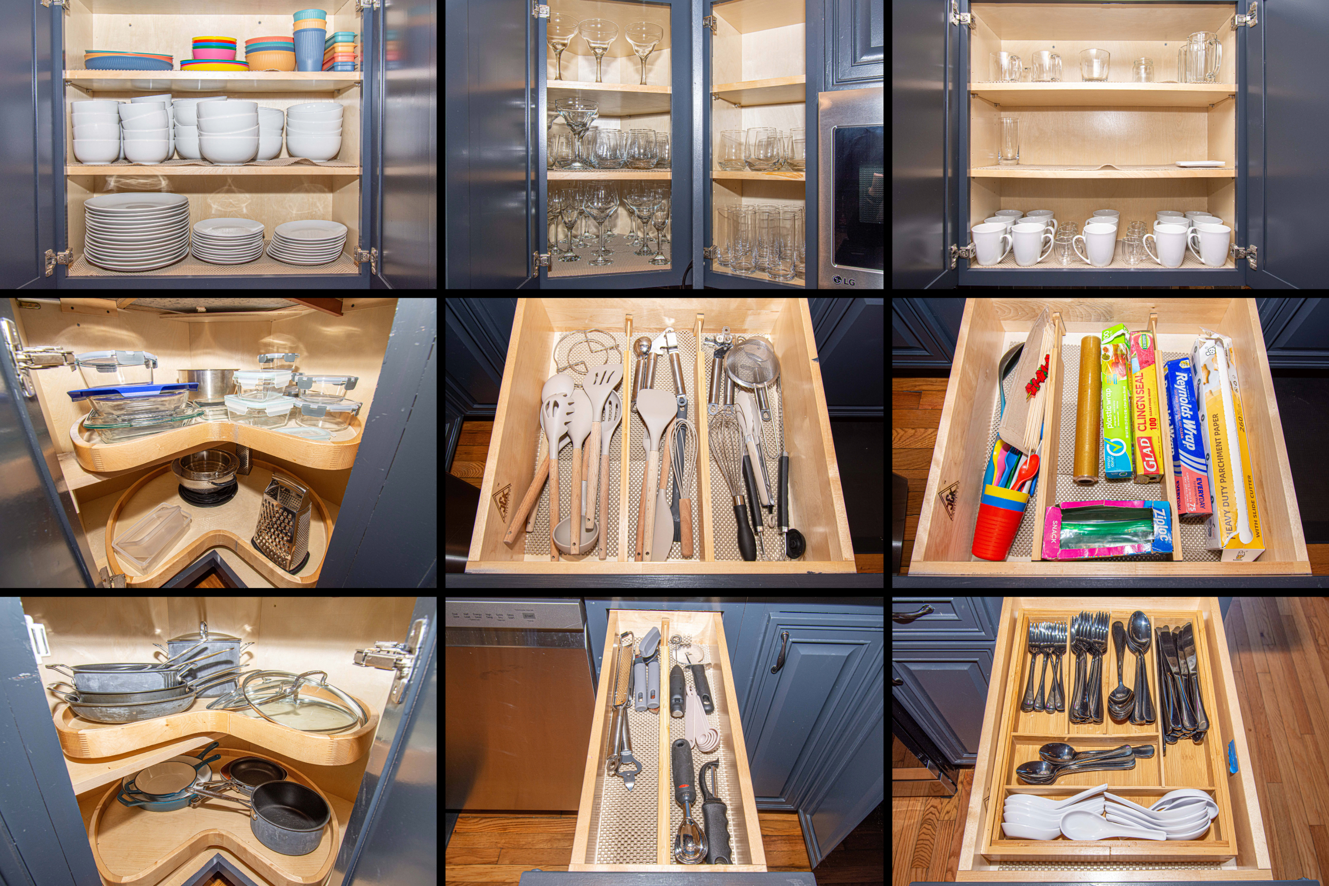 - Waffle maker, toaster, instant pot, mixer, pasta strainers, bakeware, storage containers, bakeware, etc